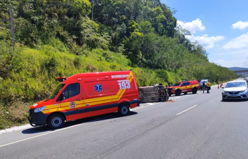 Um idoso saiu sozinho de um carro após o veículo capotar na alça de acesso à BR-470, em Gaspar, na manhã deste sábado, 22. O acidente aconteceu próximo ao elevado do Arraial d’Ouro, por volta de 10h20.