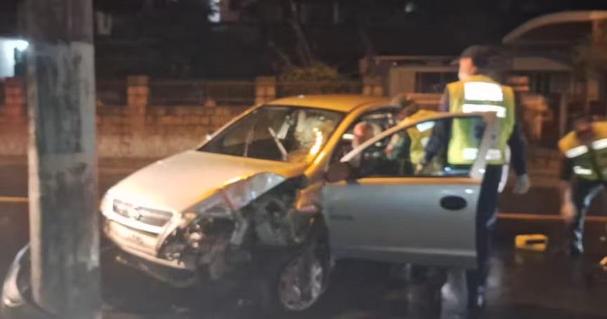 Idoso é encaminhado ao hospital após bater carro em poste, no Thomaz Coelho