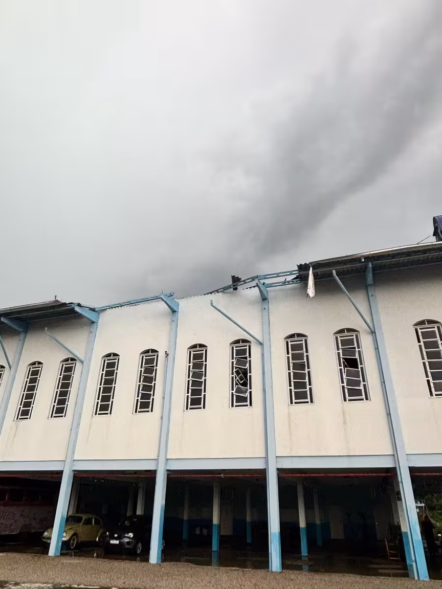 Parte do telhado foi derrubada, janelas foram quebradas e a igreja ficou exposta à chuva. O coordenador da comunidade, Vanderlei Jacintho, mora perto do local e foi avisado que havia ocorrido o destelhamento. Voluntários que atuam na comunidade registraram imagens dos estragos.