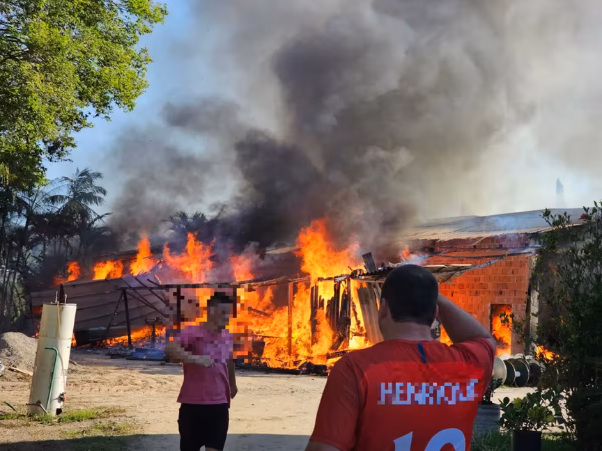 A ocorrência foi registrada por volta das 16h na rua Antônio Groh, no bairro Rio Branco. O Corpo de Bombeiros está atendendo a ocorrência.