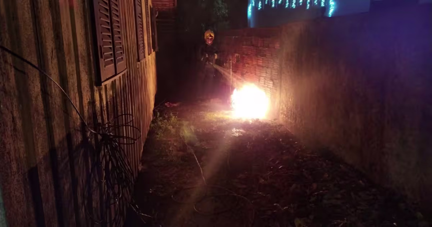A moradora relatou que estava cozinhando quando foi até a lavanderia. Ao retornar o fogo já havia se iniciado no fogão e no gás de cozinha, que ficava dentro da residência.