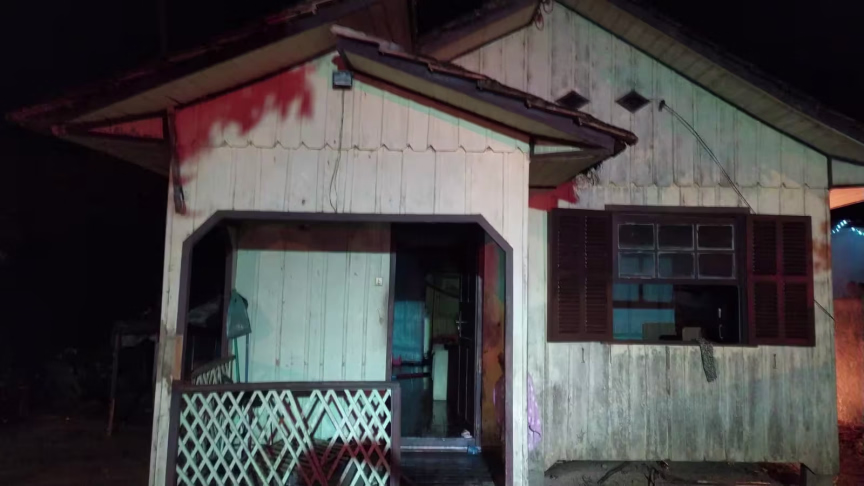 O Corpo de Bombeiros foi acionado para atender a ocorrência na rua SC-023. A casa, de aproximadamente 60 metros quadrados, é predominantemente de madeira.