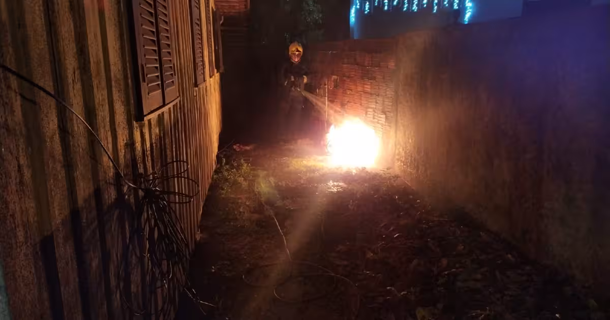 O fogo já estava se alastrando no forro da cozinha, que era de material PVC e na parede do cômodo de madeira. O local foi isolado e a energia foi desligada. Os bombeiros utilizaram 2 mil litros de água para combater o fogo.