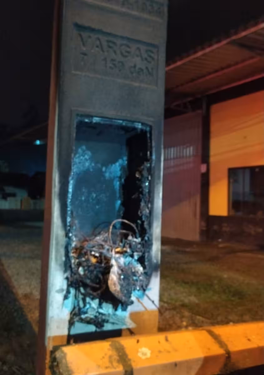 Um medidor de energia em um poste pegou fogo na noite desta sexta-feira, 15, no bairro Primeiro de Maio. O Corpo de Bombeiros foi acionado para combater o incêndio por volta de 21h20.