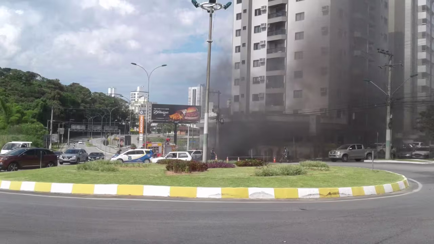 Um incêndio atingiu um veículo Hyundai Azera dentro da garagem do edifício Central Park, na esquina da avenida Martin Luther com a avenida das Comunidades, no Centro, próximo ao supermercado Angeloni, durante a tarde desta segunda-feira, 14. Houve perda total do veículo e a queima parcial de um Ford Ka.