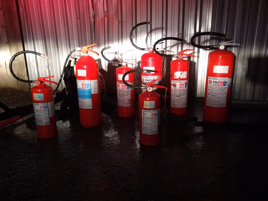 A energia geral do local foi desligada e a área isolada. O incêndio estava na fase inicial, conforme o relatório do Corpo de Bombeiros.