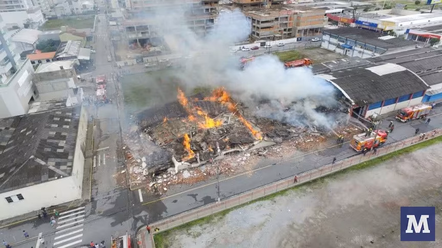 Incêndio de grandes proporções atinge depósito das lojas Koerich em São José