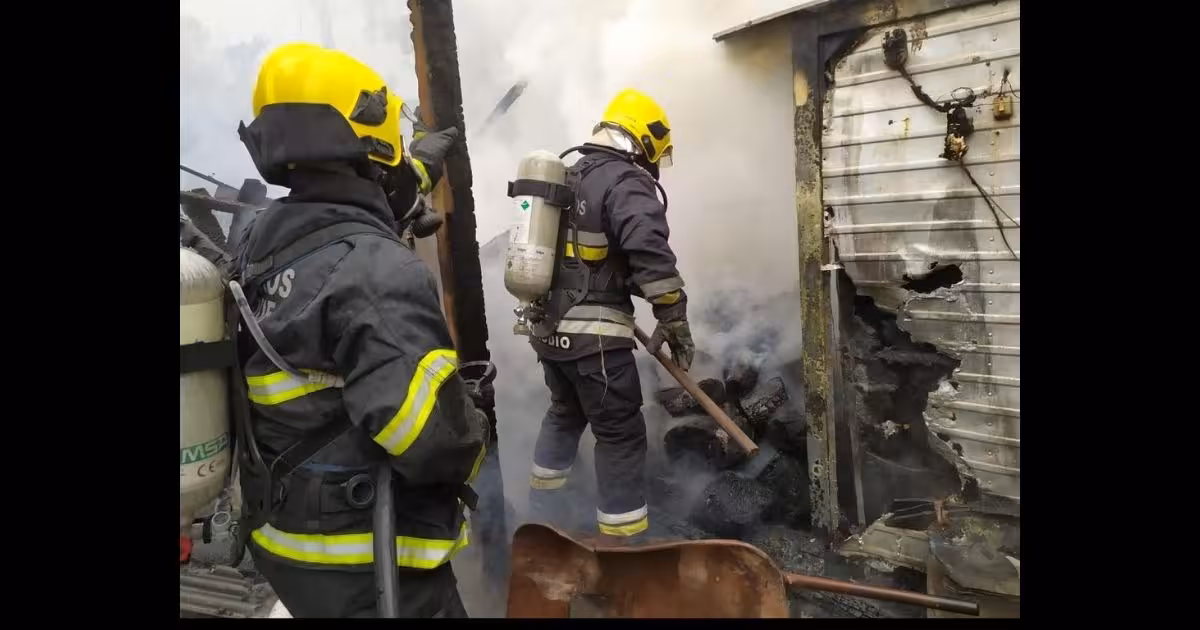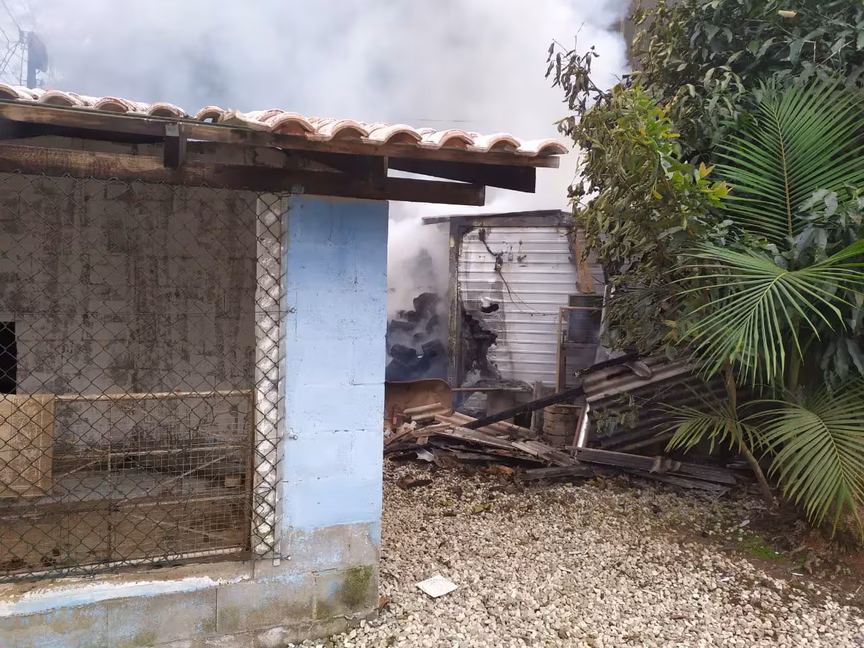 O fogo destruiu um pequeno depósito de materiais, que ficava no mesmo terreno do proprietário de uma residência, na rua LI-019. Os bombeiros, no momento, estão finalizando o atendimento. Não há registro de vítimas.