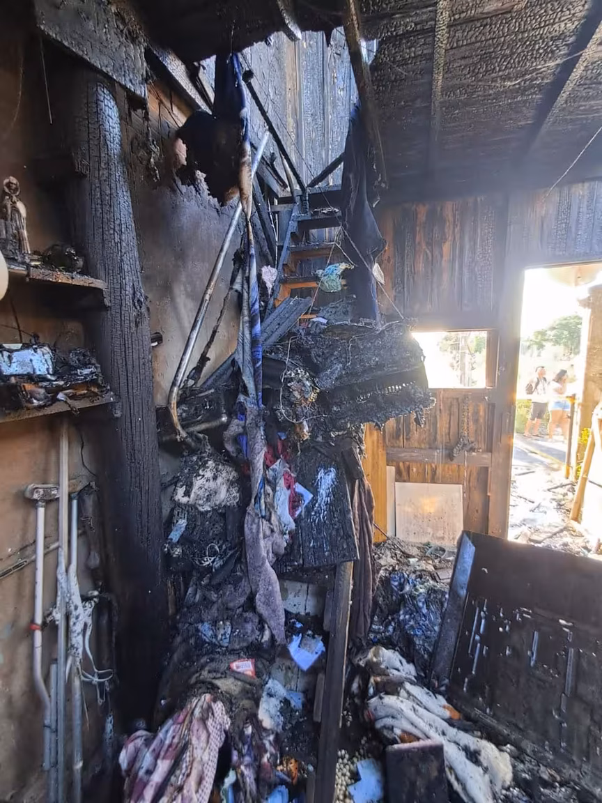 Incêndio em Itajaí atinge sete casas, mata cachorro e deixa moradores desalojados