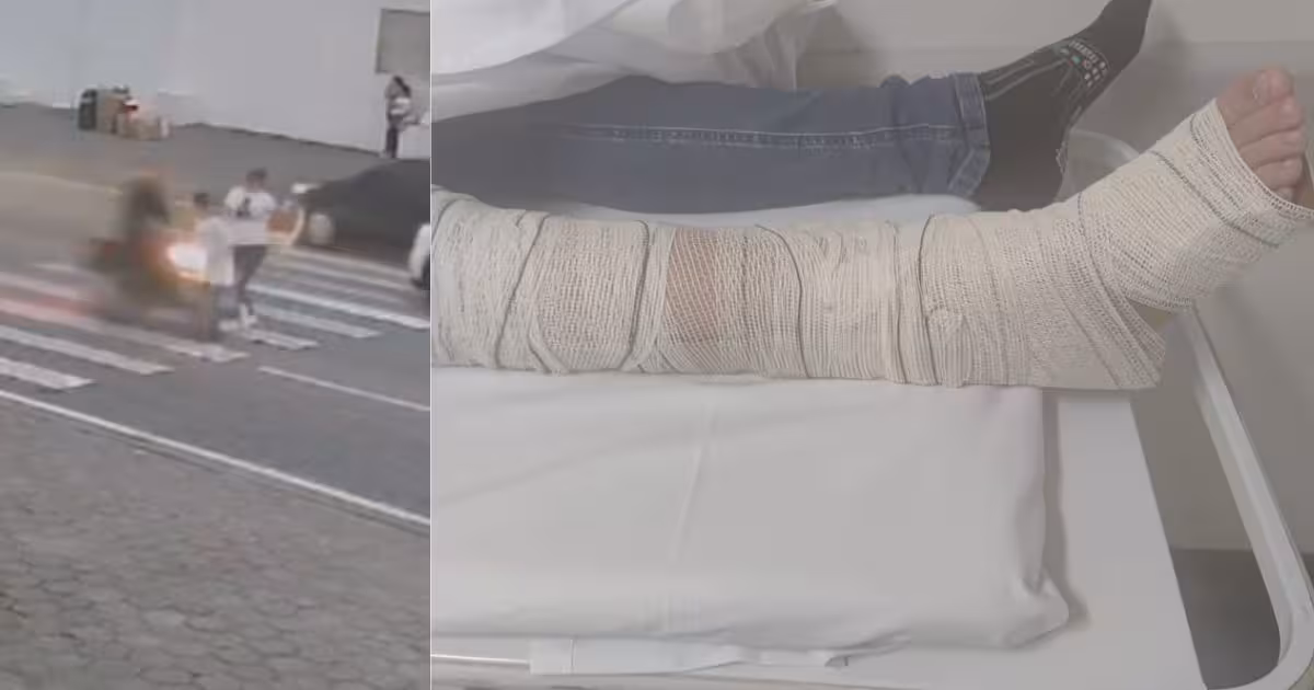 Ela conta que o irmão está internado no Hospital Azambuja, fraturou a perna direita em dois pontos e terá que passar por cirurgia. No momento do acidente, a mãe do jovem estava com ele.