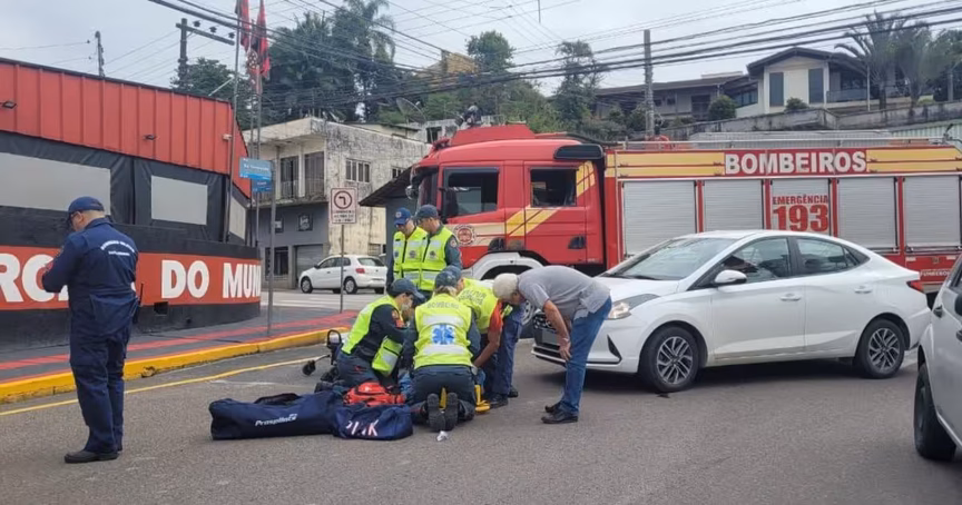 Jovem é atropelada por carro enquanto atravessava faixa de pedestre no Centro de Brusque