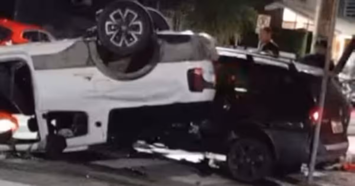 Jovem fica ferida após carro colidir contra outro e capotar no Centro de Brusque