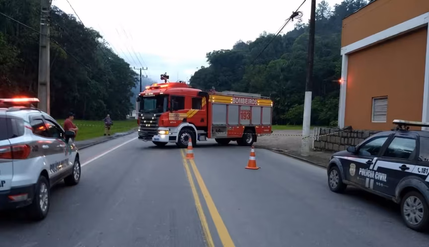 Os bombeiros alertaram que o trânsito está interditado na altura da rotatória da Renaux até o Senai.