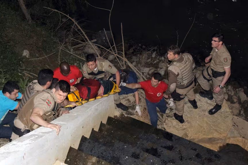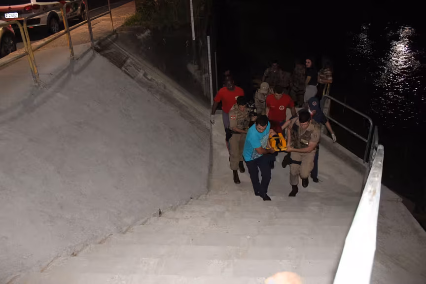 O Corpo de Bombeiros foi acionado e com apoio de policiais militares o jovem foi colocado em uma maca e resgatado por meio das escadarias de acesso ao rio, na avenida Arno Carlos Gracher, e foi encaminhado ao Hospital Azambuja. Ele foi reconhecido como a pessoa que havia sido encaminhada à Delegacia de Polícia Civil por volta da 1h30, após uma briga com a ex-namorada.