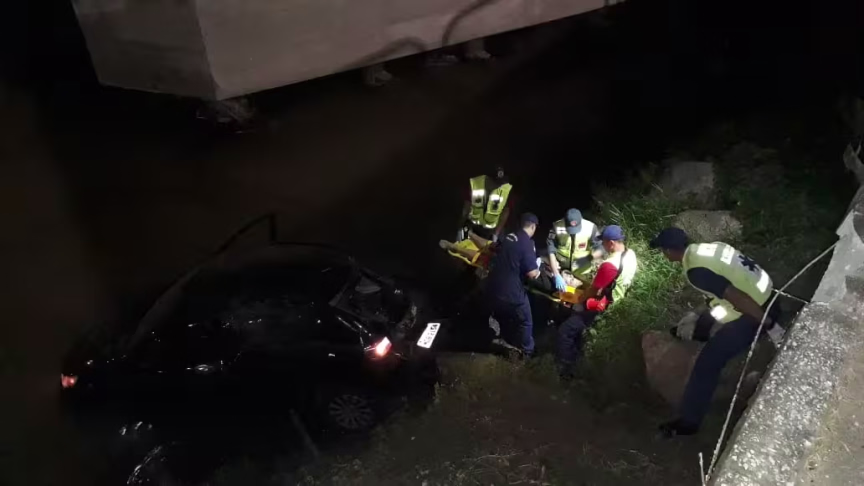 Jovens ficam feridos após veículo cair no rio Itajaí-Mirim