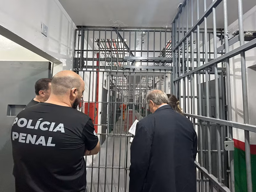 Juiz, Conselho da Comunidade e diretor avaliam condições do presídio de Brusque na última inspeção do ano