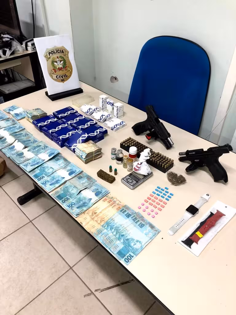 Com os condenados, foram apreendidas cocaína, maconha e ecstasy, apetrechos para o preparo e armazenamento das drogas, duas armas de fogo, munições, anabolizantes e a quantia aproximada em espécie de R$ 75.000,00, provenientes do comércio ilegal de drogas.