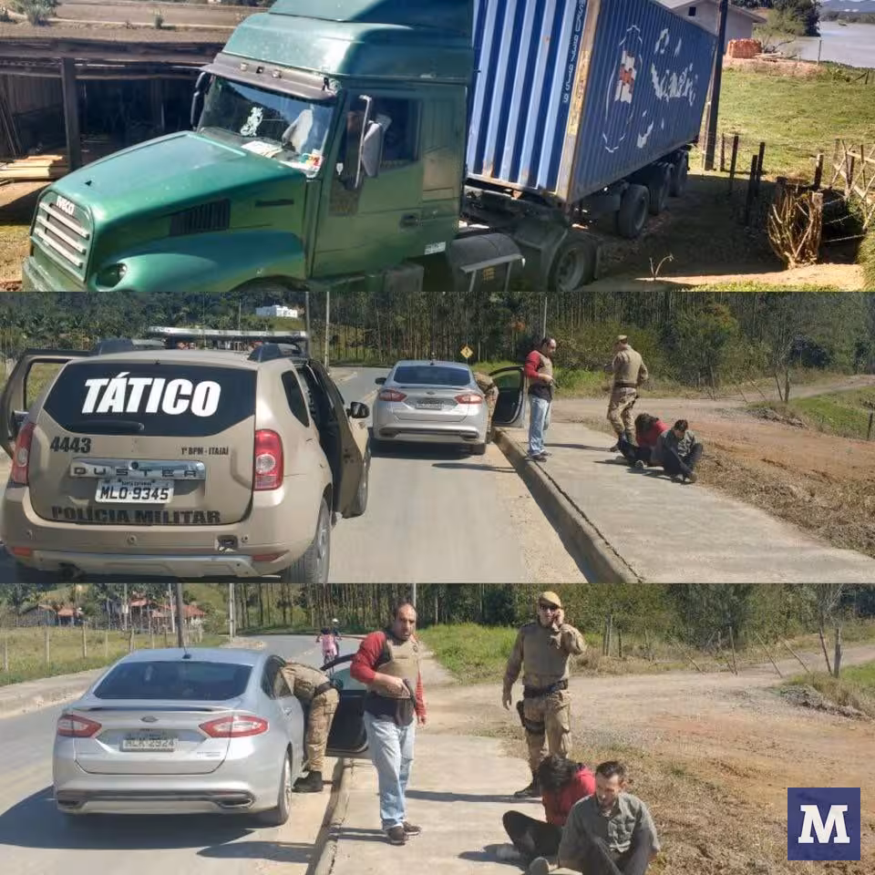 Assim que a PM recebeu a informação do crime, montou uma operação e durante o monitoramento, chegou um caminhão dirigido por um homem. Em seguida, chegaram mais três pessoas em um veículo.