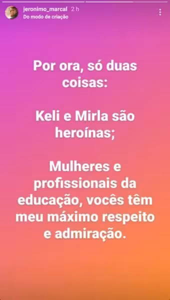 O delegado Jerônimo Marçal, responsável pela investigação do massacre a uma creche do município de Saudades, no Oeste Catarinense, afirmou que as professoras Keli Adriane Aniecevski, de 30 anos, e Mirla Renner, de 20 anos, são "heroínas". Ele comentou sobre as duas em um post nas redes sociais.