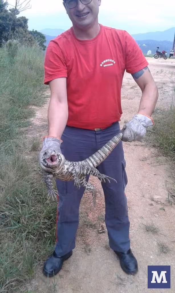 O Corpo de bombeiros de Brusque resgatou um lagarto, na manhã desta quarta-feira, 8. O animal estava em uma empresa, na rodovia Antônio Heil.