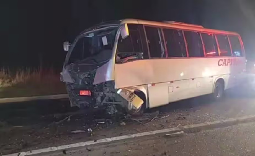 Quando se aproximou da Curva da Puris, a caminhonete, que estava em sentido contrário, rodopiou e invadiu a pista contrária, colidindo de frente com o micro-ônibus.