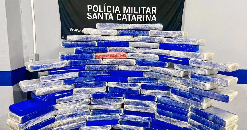 Mais de 100 quilos de cocaína são apreendidos pela PM em carro abandonado em Balneário Camboriú