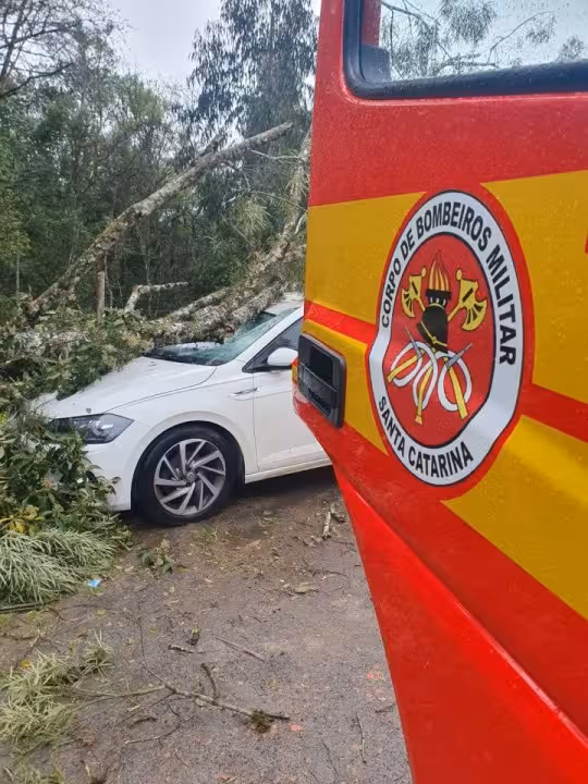 Em Campos Novos, uma árvore caiu sobre um veículo que transitava pela SC-135, na localidade de Bela Vista. O motorista, de 40 anos, conseguiu sair ileso, mas ficou preso momentaneamente sob os galhos devido ao vendaval. A rodovia precisou ser interditada por cerca de 1h30 para os trabalhos de remoção.