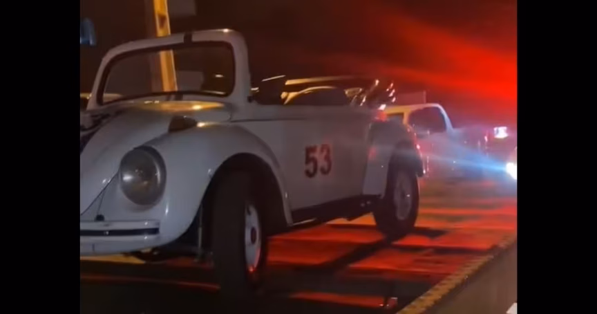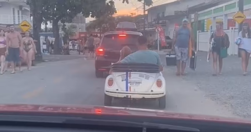 Uma menina de sete anos, que estava acompanhada do pai, teve o mini-Fusca guinchado pela Polícia Militar no último sábado, 1º, em Itapoá, Norte de Santa Catarina. A criança fazia um passeio pelas ruas da cidade.