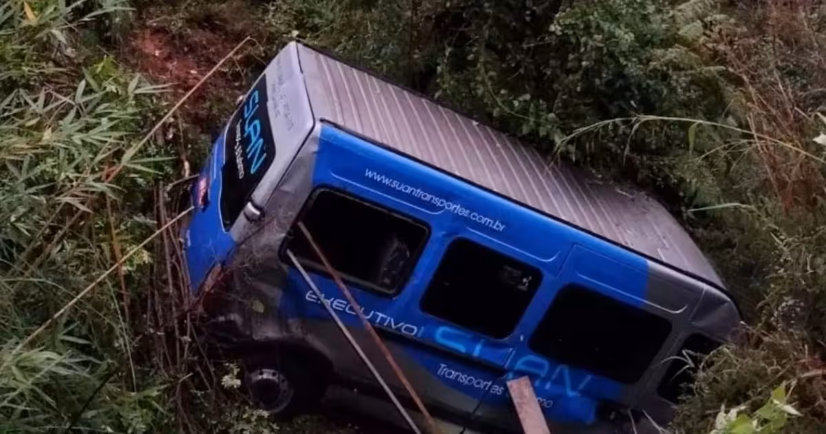 Micro-ônibus com crianças cai de barranco após saída de pista no Norte de SC