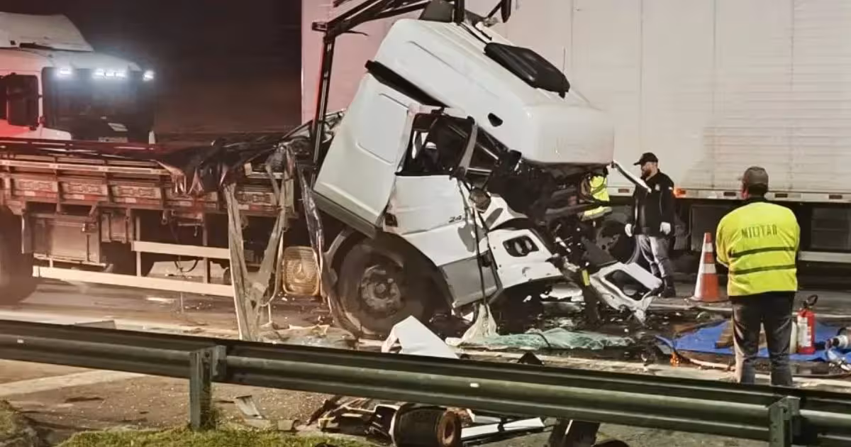 "Os veículos 1 (Mercedes-Benz) e 2 (Scania) seguiam sentido sul pela faixa da esquerda. Havia fila devido a outro acidente. O veículo 2 reduziu a velocidade e o veículo 1 colidiu em sua traseira", informou a PRF.