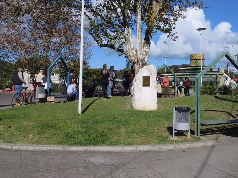 Com a manobra, o Fiesta bateu na lateral do Fusca que foi arremessado para o meio fio da praça. Floriani relata que cuidou para desviar da pedra com a placa de inauguração e o poste de luz, com isso, passou entre os dois e foi em direção ao chafariz.