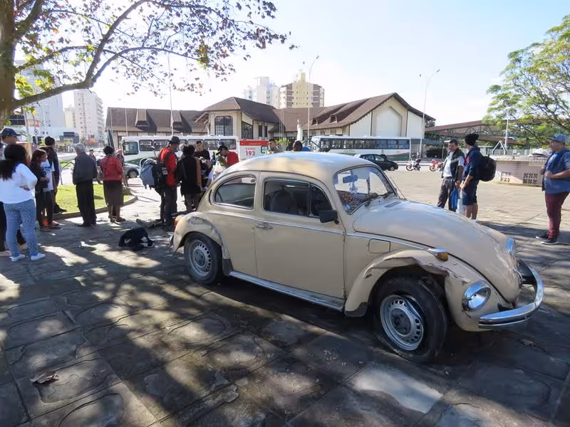 Segundo o motorista do Fusca, Bento Floriani, 57 anos, ele dirigia pela pista do lado esquerdo da rua Prefeito Germano Schaefer, quando a motorista do Fiesta, Luciane Aparecida de Carli Harbs, 22, que estava na pista da direita, tentou convergir para entrar na rua do terminal.