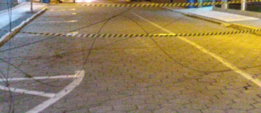 Motociclista cai ao se deparar com fios de energia caídos na rua, no Centro