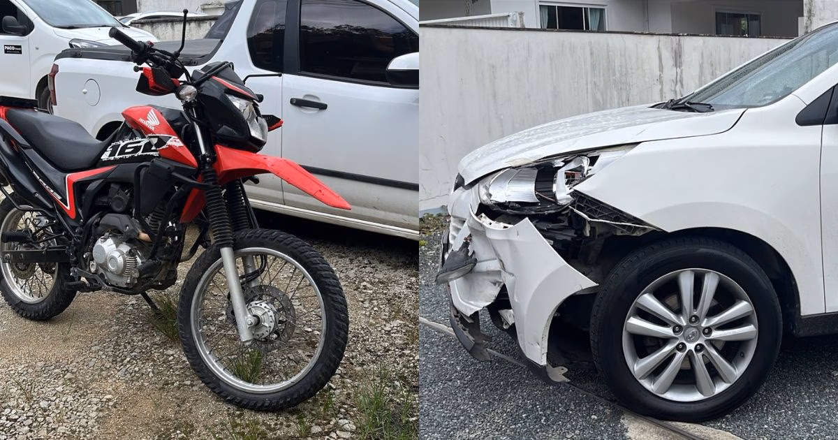 Motociclista colide com carro após derrapar e invadir a contramão em Brusque