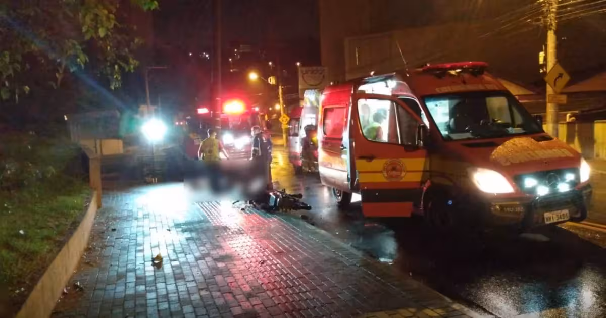 O Corpo de Bombeiros Militar foi acionado na madrugada desta segunda-feira, 21, para atender a colisão de uma moto em poste na rua Bahia, bairro Vila Nova, em Blumenau.