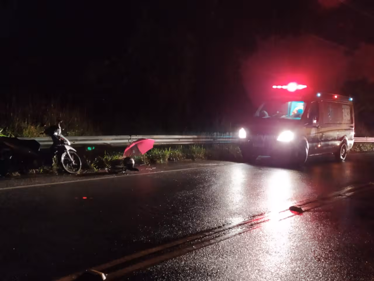 A vítima estava deitada no acostamento consciente e orientada. O homem conduzia uma moto Biz.