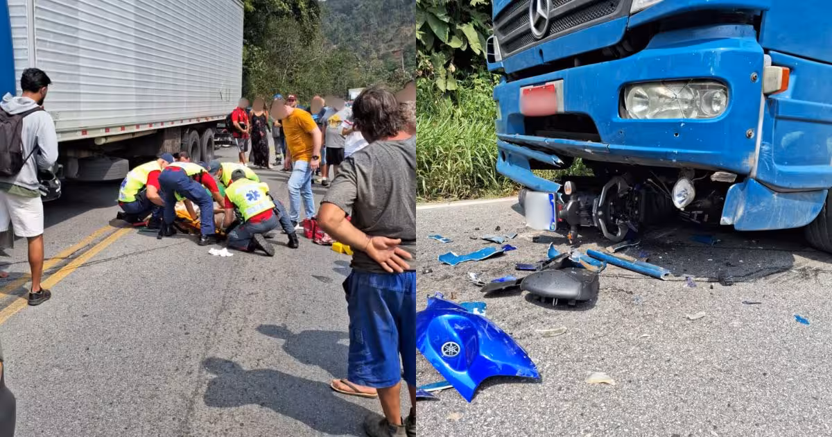 Imagens mostram motocicleta debaixo do caminhão