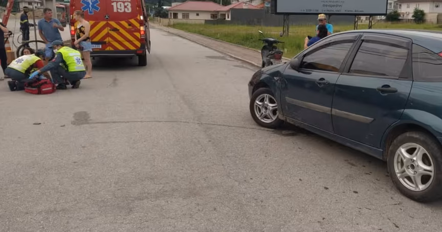 Motociclista fica ferida após colisão com carro no Centro de Botuverá