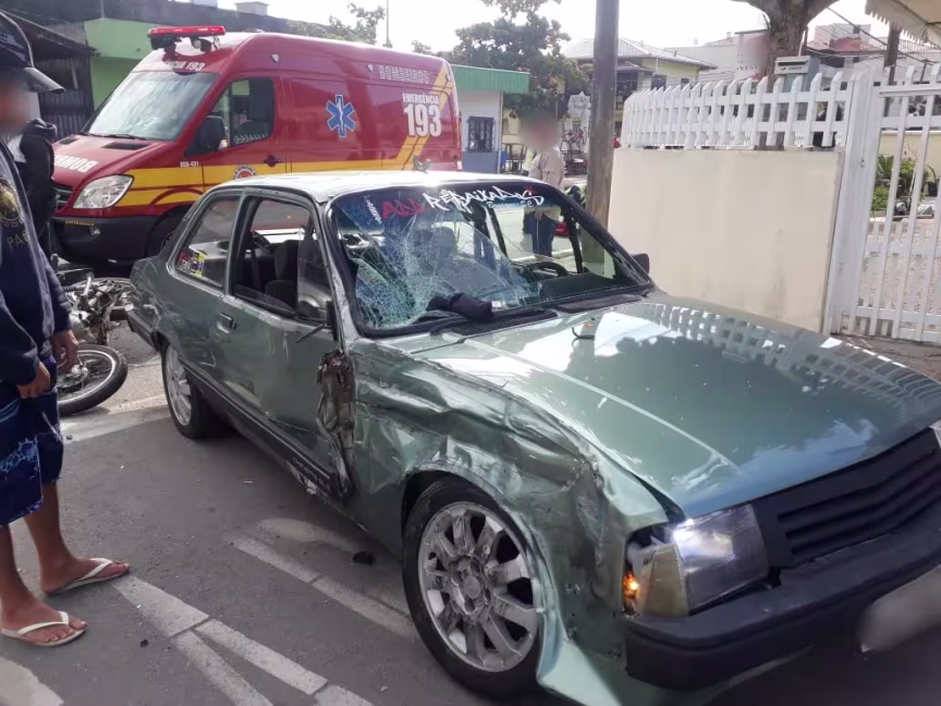 De acordo com os bombeiros, foi uma colisão entre carro e moto. O condutor da motocicleta CG Titan, de cor azul e com placa de Brusque, um homem de 26 anos, foi arremessado a aproximadamente cinco metros do local.