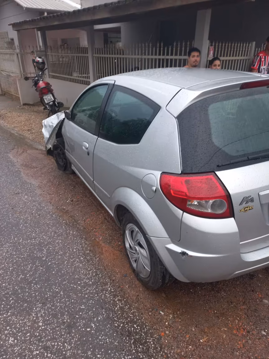 Todos os veículos tinham placas de Brusque. O motociclista ficou gravemente ferido e foi levado ao Hospital Azambuja. Ele apresentava concussão, suspeita de fratura e um corte no braço.