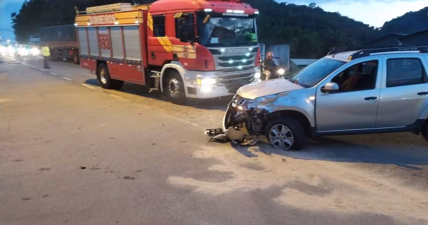 Motociclista fica gravemente ferido após colisão com carro em rodovia que liga Gaspar e Brusque