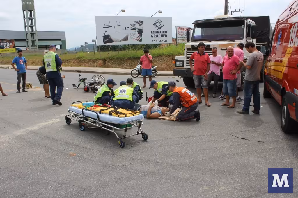 Por volta das 15h30 desta quinta-feira, 7, um acidente deixou Elias Ferreira, 18 anos, gravemente ferido. A colisão entre a motocicleta e uma carreta ocorreu na rodovia Antônio Heil, próximo a empresa Irmãos Fischer.