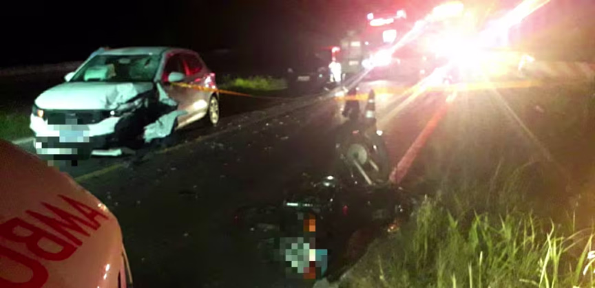 Um motociclista de 38 anos morreu após ser arremessado em uma colisão frontal entre carro e moto, na noite desta quinta-feira, 9, na BR-470, em Gaspar.