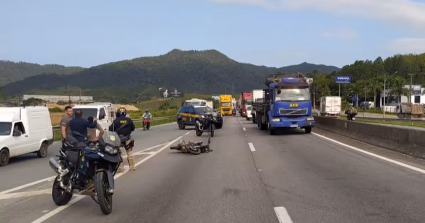 De acordo com a Polícia Rodoviária, os dois veículos seguiam no mesmo sentido da via, quando o caminhão, da marca Scania/G380 com placa de Brusque, teria batido na lateral da moto, modelo Honda/Biz, com placa de Itajaí.