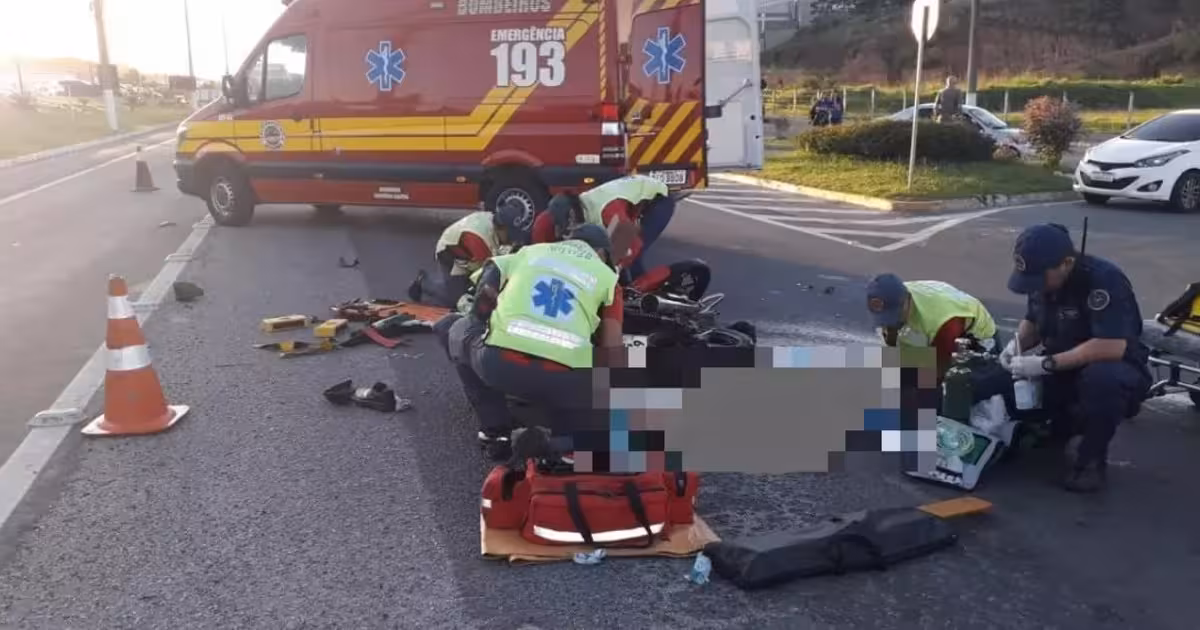 O jovem, de 19 anos, condutor da moto, foi encontrado deitado na via. Ele apresentava politrauma, suspeita de hemorragia interna na região do abdômen, além de escoriações pelo corpo.