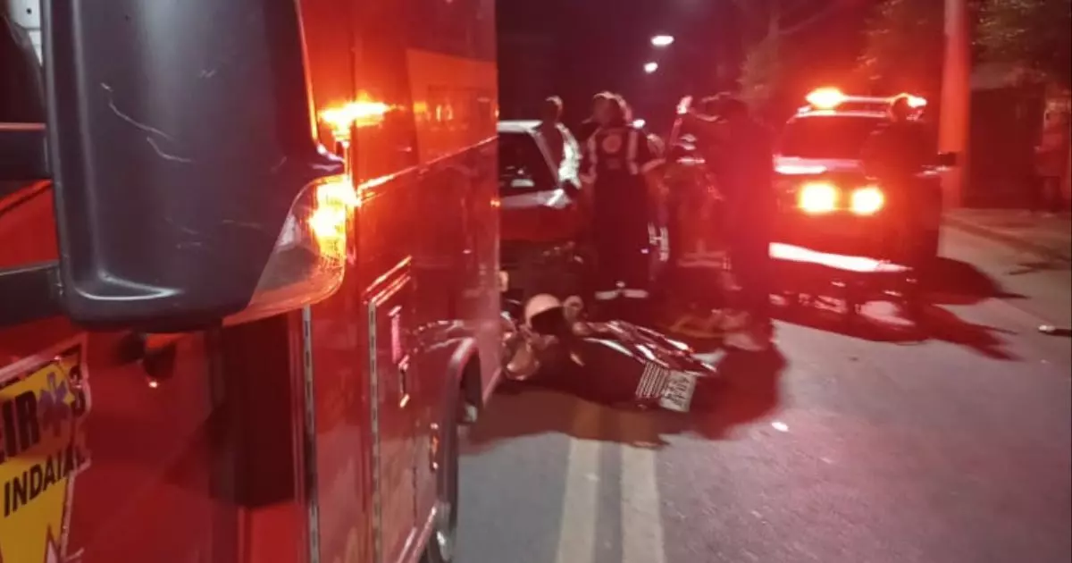 A PM também foi acionada e esteve no local. Segundo as informações dos bombeiros, foi uma colisão entre os dois carros, Renault Clio e Fiat Uno, e uma moto Honda CG160. O condutor do Clio relatou que foi surpreendido por duas motos disputando “racha” na contramão e ultrapassando diversos veículos.