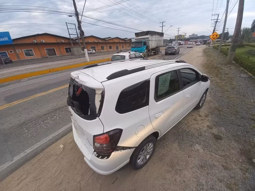 O acidente envolveu uma Chevrolet Spin, com placas de Brusque, conduzida por um homem de 33 anos, e uma Honda/Biz.