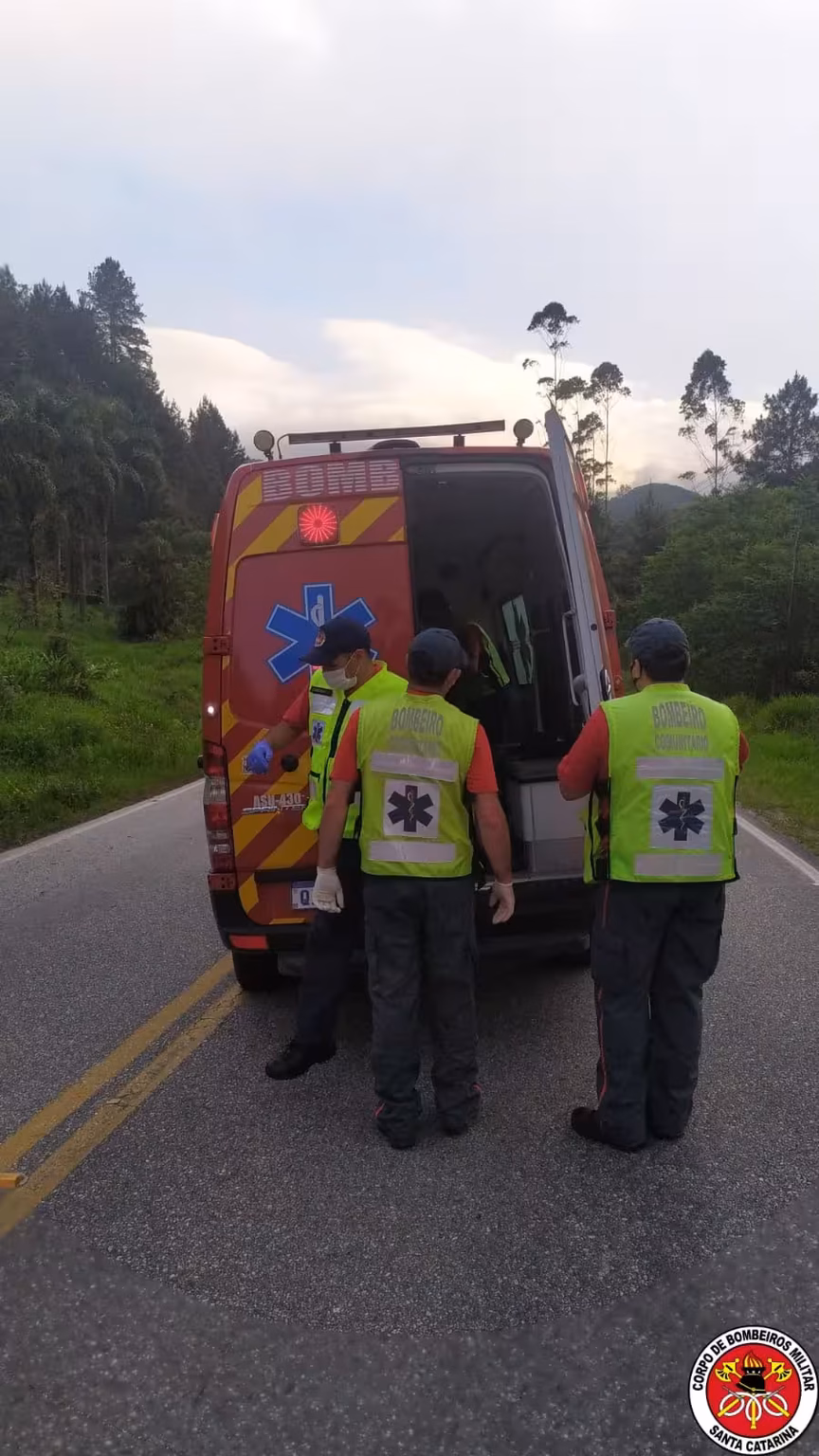 A vítima estava consciente e orientada. O motociclista já estava sem o capacete e apresentava suspeita de fratura na perna direita, na região da canela. Além disso, ele estava com dor no tórax.