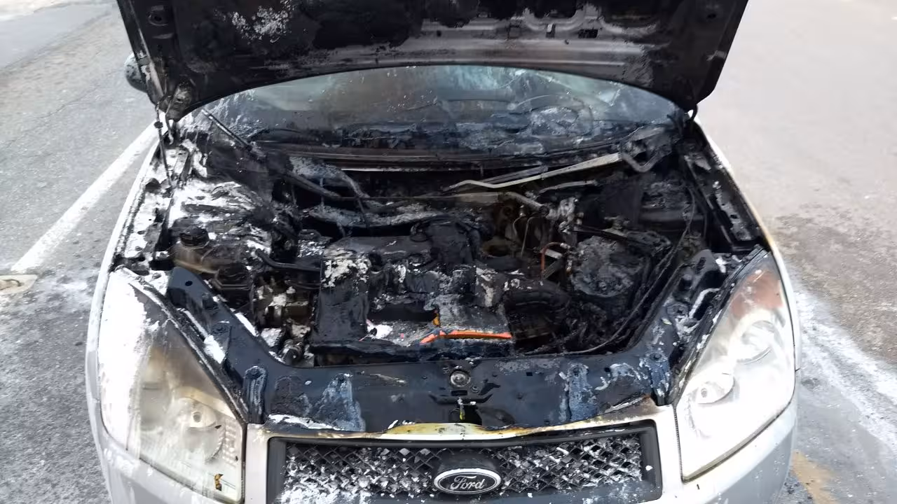 O motor de um veículo Fiesta, prata, de Brusque, pegou fogo na tarde desta sexta-feira, 18, na rodovia Antônio Heil, no Centro 2.