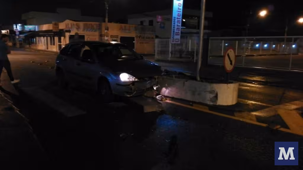 A Polícia Militar foi acionada e ao chegar ao local, o motorista já havia fugido do local. O veículo ficou preso no canteiro e um guincho precisou retirar o carro do local.